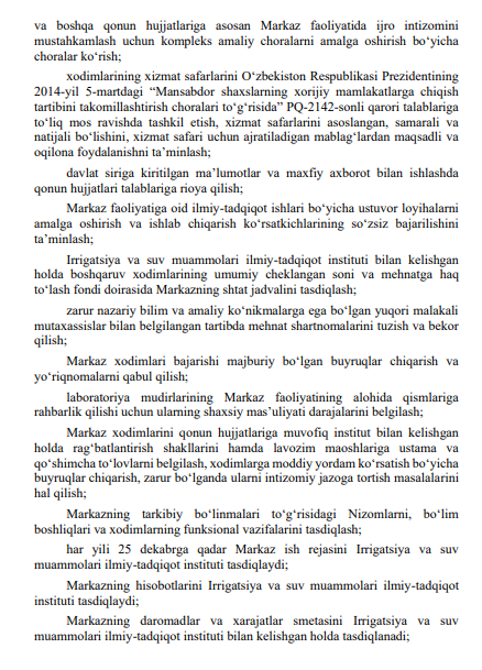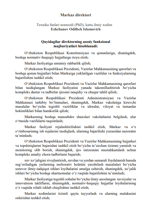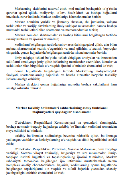 “Suv O‘zbekiston Respublikasining davlat mulki, umummilliy boylik hisoblanadi, suvdan oqilona foydalanish lozim bo'lib, u davlat tomonidan qo'riqlanadi”